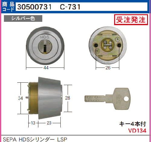 C-731 HDSシリンダー ミワLSP用 シルバー色